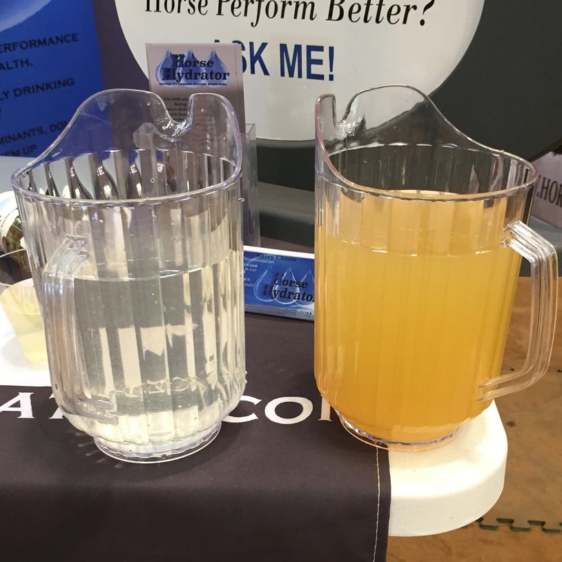 You can see what the water looks like on the left after it was filtered by the Horse Hydrator.